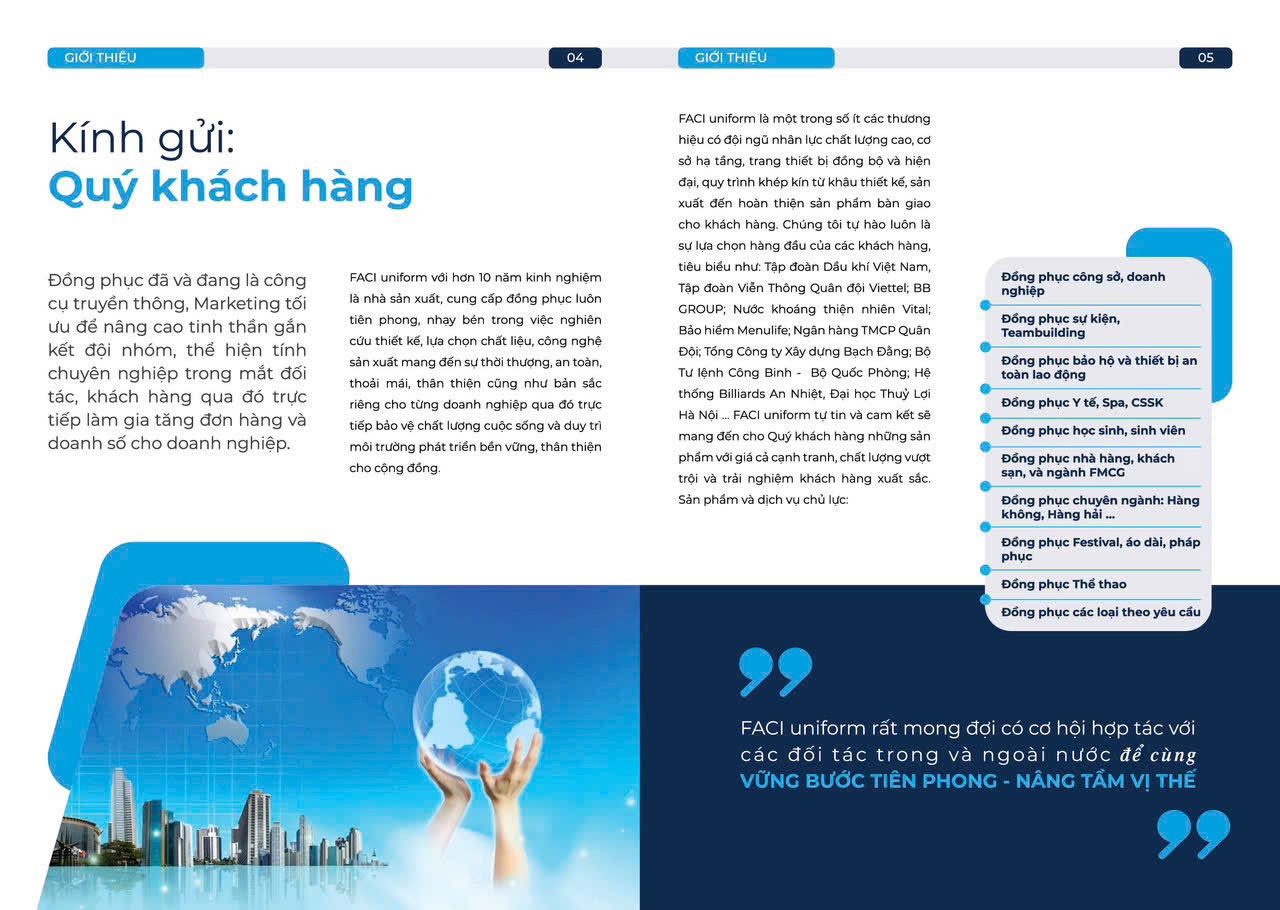 CÔNG TY TNHH TẬP ĐOÀN FCI (FACI UNIFORM) là công ty chuyên thiết kế và sản xuất đồng phục hàng đầu tại Việt Nam, với hơn 10 năm kinh nghiệm trong lĩnh vực may mặc chuyên nghiệp. Chúng tôi tự hào mang đến những giải pháp đồng phục toàn diện, sáng tạo và chất lượng cao cho các doanh nghiệp, tổ chức và đơn vị.